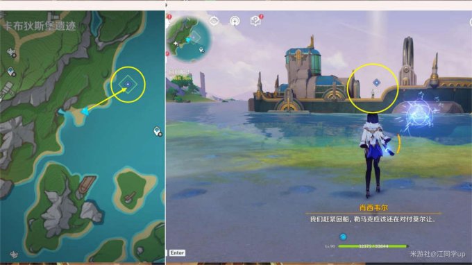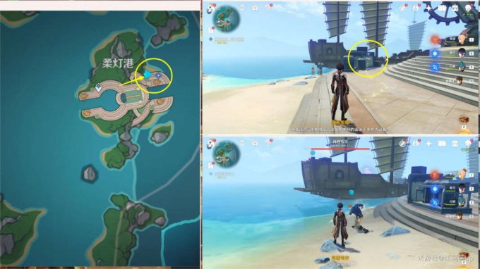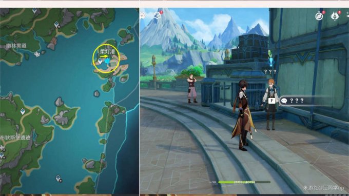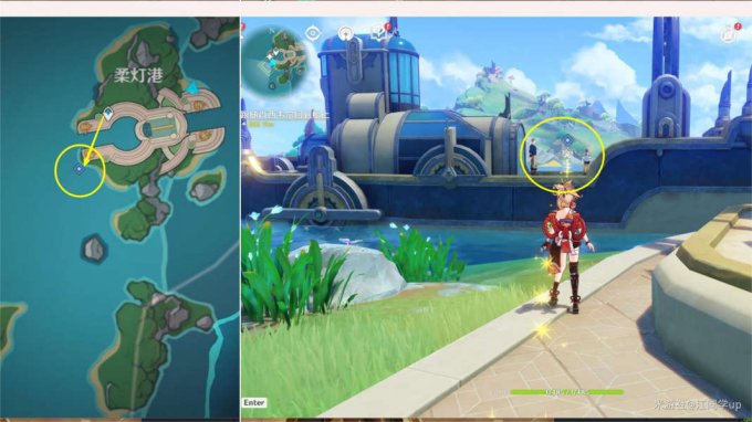 (1)做完前置任务【枫丹科学院纪事】系列任务后,才能在下图【柔灯港】位置,接到枫丹世界任务【一份预期内的计划】
