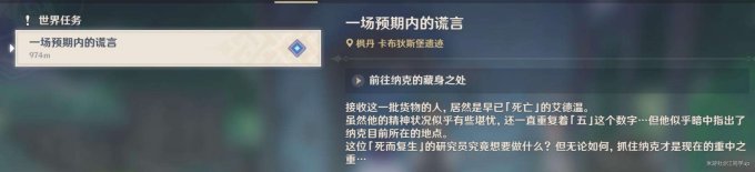 (2)做完枫丹世界任务【一份预期内的计划】后,即可自动接到枫丹声望任务【一份预期内的谎言】