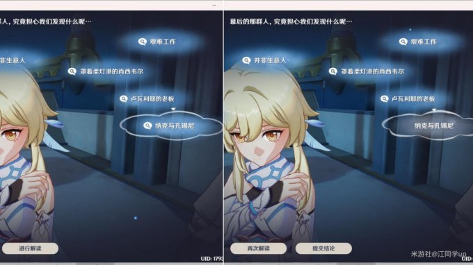 (8)下来第3次选择【纳克与孔锡尼】后,进行解读,解读后,提交结论,即可完成这次推理解密