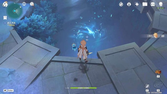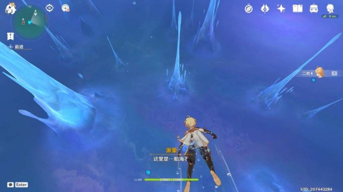 进入胎海洋流1分钟左右,左右上下移动躲避「隙漏」