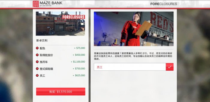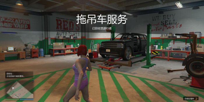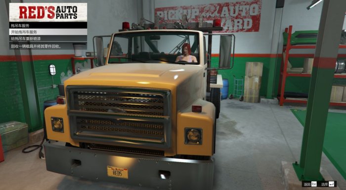 当玩家驾驶拖吊车时,即可选择开始服务或重新喷漆(无法在非任务状态下使用该车)。