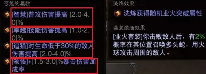 那么,野蛮人的突破套装效果推荐则是词条质量高数量多的:业火套装