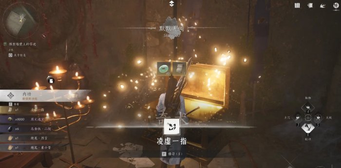 6、打开瀑布后的机关后,跟随任务指引打开大箱子,获得暗伤·奇术【凌虚一指】
