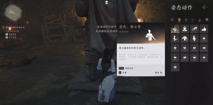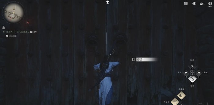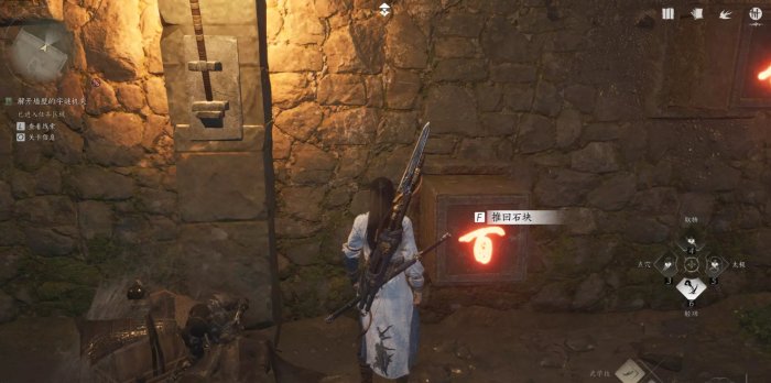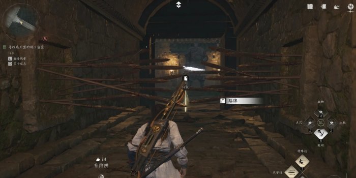 3、点燃两个机关后进入地下,直接跳过陷阱,到雕像前使用动作【燕云誓】(单击右键)