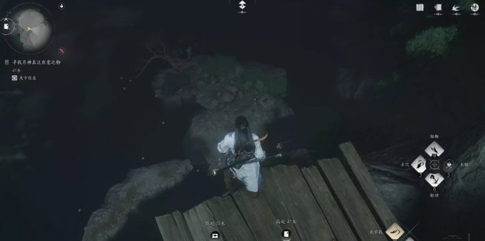 6、断桥使用技能跳得过去,但不建议。桥头右侧有山洞通道,往里走可以潜水过去(水里有三个箱子)