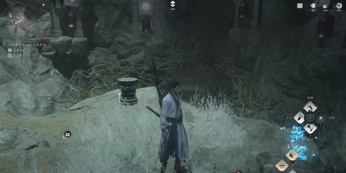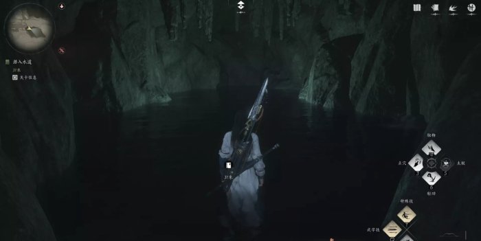 3、按【V】开启探索,可以看到三个白色的机关,全部重启后抽干水池