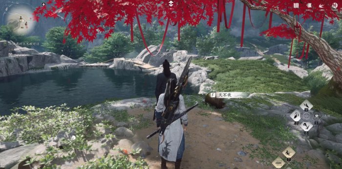 2、跳入旁边的小湖,按【ALT】键潜入湖底