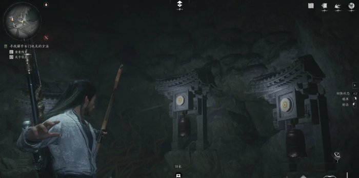 9、记住青铜钟敲响的顺序3、4、1、2,然后使用弓箭按顺序射击黄钟上的标靶,打开大门(射错了可以重新启动机关重置)