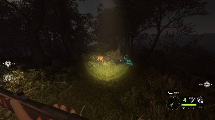 2、带好装备,前哨战贮藏柜叫一台车,上车后“L”键打开车灯,C键切换视角(我的默认是C,但是之前查看线索也是C,所以我冲突了,我把线索显示改成现在的默认U键了,这个要注意,不然打猎没踪迹指示那可太沉浸了…)