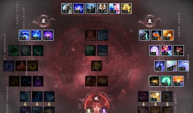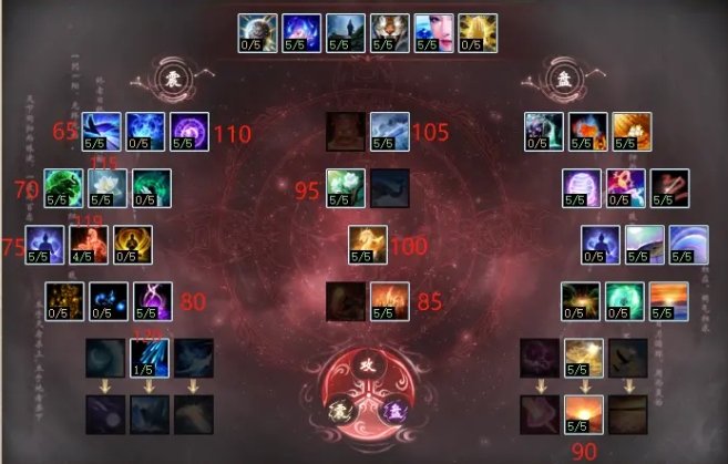 震慑天赋半区可优先选择“射雕”、“吞象”、“修魂固魄”、“仁心”,点满这20点,就可点出第二层大招“东曦既驾”或“救焚拯溺”(如果只有85点,可优先选择“救焚拯溺”,达到90点再将“东曦既驾”点满)。若继续修炼天枢点,达到105点,就可将中间技能“怨海难填”、“多多益善”、“游龙飞燕”全部点出。最后的15点,则可选择震慑天赋半区的“濯缨”、“平心”、“伏虎”点亮,若伏虎只点4点,还可留一点将大招“覆雨”或“逐月”点亮,实现双大招。