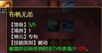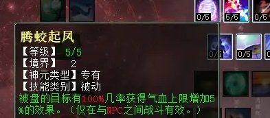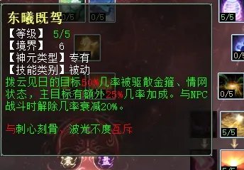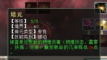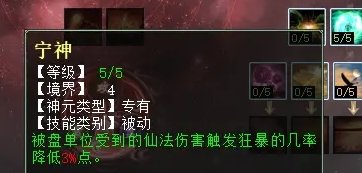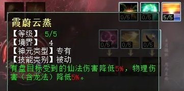 “盘”天赋第四层三个技能,分别是:培元(任务、PK通用,抗致命),宁神(任务、PK通用,抗仙法狂暴率),霞蔚云蒸(任务、PK通用,降低仙法、龙法、物理伤害)
