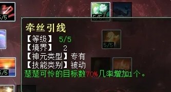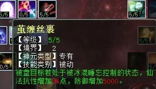 “盘”天赋第二层三个技能,分别是:茧缠丝裹(任务、PK通用,增加被控单位的仙法抗性和防御力),腾蛟起风(任务专用,被盘单位增加气血上限5%),牵丝引线(任务、PK通用,3法盘几率盘6)