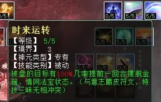 “盘”天赋第三层三个技能,分别是:修魂固魄(任务、PK通用,增加战斗中的人法抗性),未雨绸缪(任务、PK通用,被盘单位提前一回合摆脱冰混睡忘状态),时来运转(任务、PK通用,被盘单位提前一回合摆脱金箍、情网)