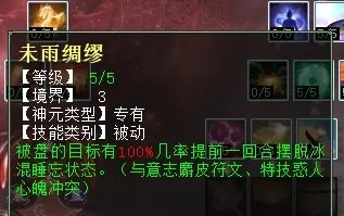 “未雨绸缪”和“时来运转”虽然和意志符、点粹特技“惑人心魄”、“三昧无相”冲突,但当下的PK,已经很少玩家选择吃意志符了(意志符属性强法类符文,与复活符、忽视符、强克符、怨气符等同类,同类的符只能吃一个),“惑人心魄”、“三昧无相”点粹特技也没普及到人手一个,所以用盘天赋来稍做弥补,还是不错的选择。因此建议优先选择这两个技能,但如果队伍细节做的很好,多个单位都带有点粹特技“惑人心魄”或“三昧无相”,那么也可将“未雨绸缪”或“时来运转”换为“修魂固魄”。