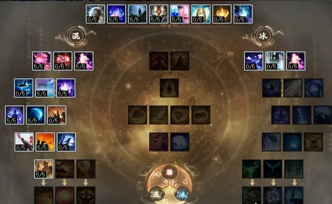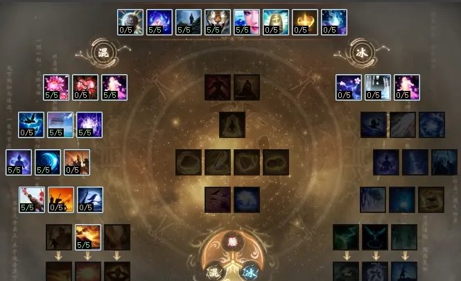 60点以上天枢点的玩家配合5、6阶混睡武器、装备,可以选用“混睡”天赋,技能点选顺序如下图。