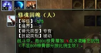 男人第一排的技能一共有8个,其中护盾(抗物理)、蕴魄(加根骨)、绝尘(加速度)、含光(加法量)、润颜(加血量)同魔族的一样,另外还有千钧(加力量)、乱刃(附混攻击几率)、语冰(附冰攻击几率)。后面这三个技能是为大力男人准备的,一般正常玩家都用不上,只需要将蕴魄、绝尘、含光、润颜加满20点就可以。