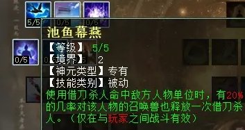 混天赋第二排三个技能,分别是:池鱼幕燕(PK专用,用4法混人物时也有几率混到其BB),海市蜃楼(任务专用,提高被混的NPC攻击己方的几率),迷神衔怒(PK专用,己方有单位被混时,自己有几率获得2点怒气)