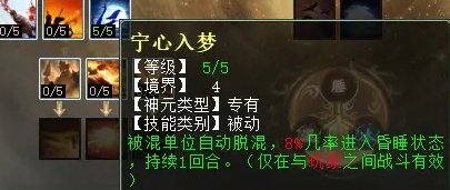 睡法大招可以采用重度睡“长眠不醒”,也可以采用“行眠立盹”,这个技能也是个神技,对己方单位使用,可以解除所有控制,包括情网、金箍。考虑到目前只有乐衷PK的土豪玩家才点满120点天赋,上图仅针对PK玩法。