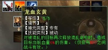 混天赋第四排三个技能,分别是:杜鹃啼血(PK专用,被混的单位在3回合内解混则会损失血量),龙血玄黄(任务专用,再次混上被混的单位会扣血),宁心入梦(PK专用,被混单位自动脱混,几率变成被睡)