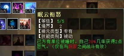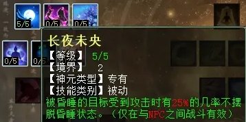 睡天赋第二排三个技能,分别是:长夜未央(任务专用,被睡的单位受到伤害几率不会醒),残酒慵妆(PK专用,被睡的单位非物理、法术攻击摆脱控制时,几率扣除部分法量),眠云衔怒(PK专用,己方有单位被睡,自己几率获得2点怒气)