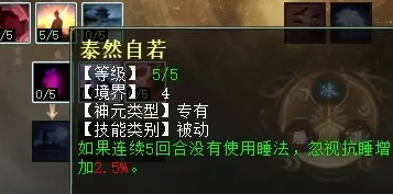 酣然入梦:主动技,强力大睡,临时增加忽视睡,用过后10回合无法出大睡。冷却10回合。