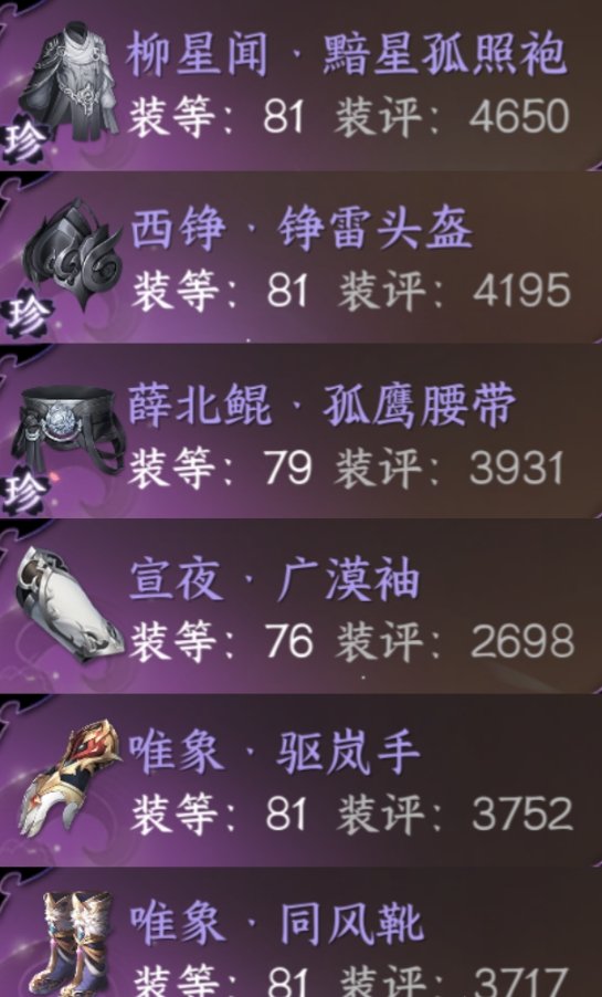 衣服:柳星闻·黯星孤照袍>柳星闻·流星逐月袍=81百炼上衣>其他上衣
