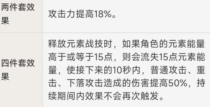 其充能效率和增伤两个套装属性,让大部分的角色都能和它扯上一点关系,毕竟遇事不决就选绝缘套嘛!适用性最高的圣遗物,没有之一。