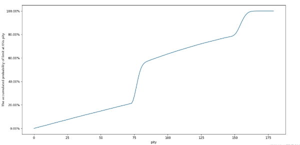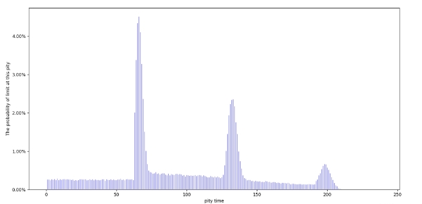 63~74抽:从63抽开始,每抽概率提升7%,直到第74抽是81.2%概率。