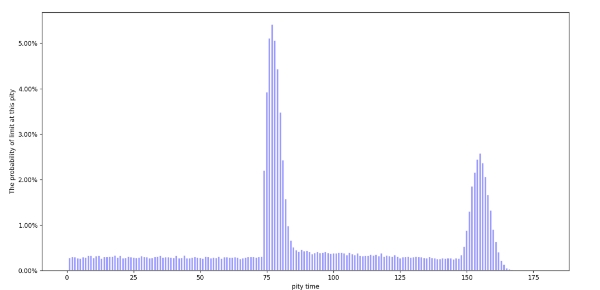 75~80抽:从75抽开始,每抽概率提升3.5%,直到第80抽是100%概率。