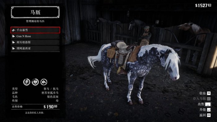 △血量和体力:因为有永动机马鞍的加持,体力可以忽略不计,如果喜欢打架,经常背着通缉,那么选择马匹时就要考虑血量因素