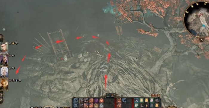 走过枯树藤继续朝南,小地图上可以观察到进入支线任务的范围内