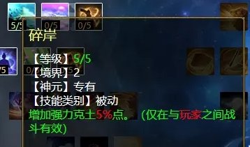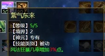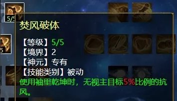 风天赋第二排三个技能,分别是:碎岸(PK专用,增加强力克土),紫气东来(任务、PK通用,增加风法狂暴几率),焚风破体(任务、PK通用,风法五法秒时对主目标增加忽视)