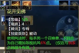 那PK玩家能不能选“凝神入魄”呢?也可以,但是对开号的人要求比较高,选好主目标是秒出高伤害的前提。只想无脑输出的话,可以选“花开见佛”,这也是风法仙越秒越疼的神技之一。另一个就从“临战追风”和“蓄风成势”里挑一个。只有60点天赋的小伙伴就选“花开见佛”吧,60点以上再点“踏风”技能。