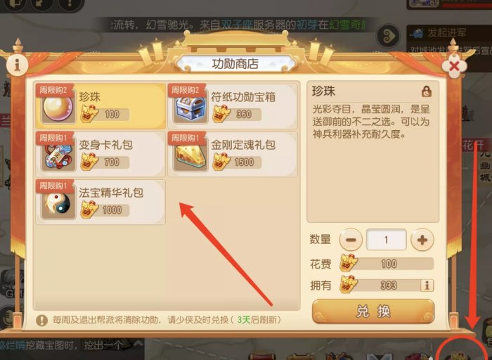 每周日24:00:00功勋将会清零,请各位少侠注意及时使用。