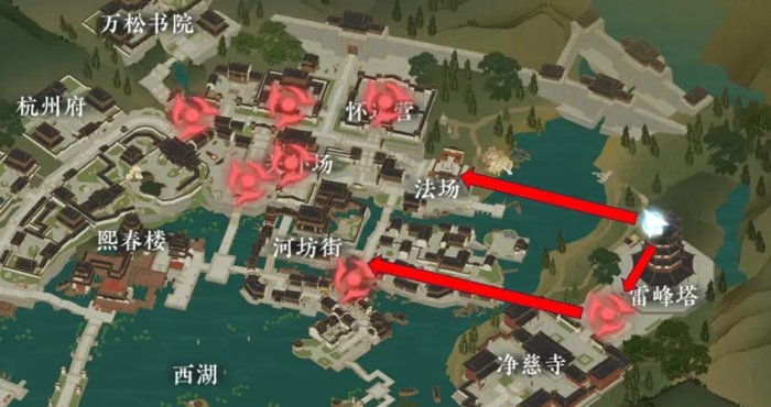 另外,由于塔下的小怪与其他的敌方被打完塔下的小怪被地图分割,玩家可以从右侧小路抵达河坊街。