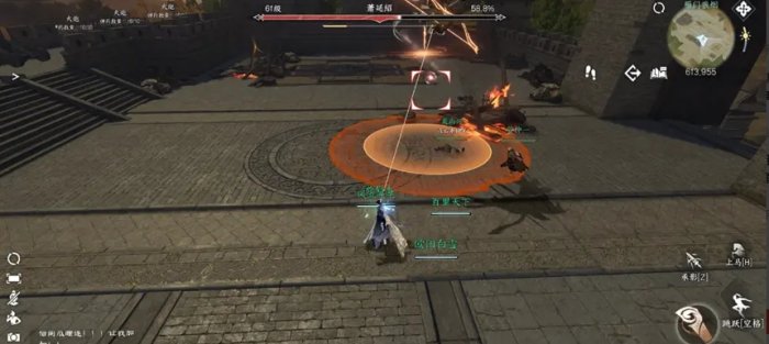 其次是BOSS半蹲造成一个以其为圆心的小范围AOE此时玩家需要尽量远离BOSS,后续二段就是一个范围极大的半屏AOE技能。