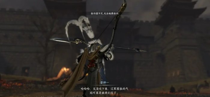 当玩家没有成功守住城门时,管仲一也会鼓舞玩家,同样也会触发后续剧情萧延绍上城墙的剧情(这里没有对应成就这件事我不认可)