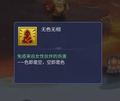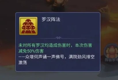 金身罗汉,一共7位,免疫女性伙伴伤害。 当我方未对所有罗汉均造成伤害时,本次伤害减免50%伤害。