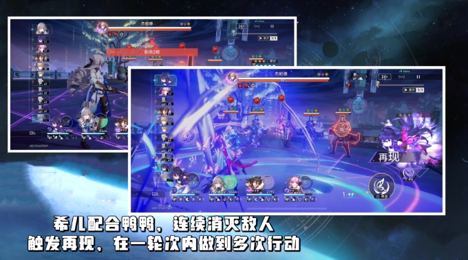 在无对群角色,只有对单主c比如希儿的时候怎么去输出呢?对单特化的角色应对虚构叙事是肯定有很大短板的,要想做到在一定轮次内消灭更多的敌人,最直接的手段就是让其速度堆的足够高,做到一轮多动;这样来看布洛妮娅是不可或缺的角色之一,由于本期怪诞逸闻对于大招的需求很大,因此另一个辅助位置还可以选择能为主c大招充能的停云;对单方面希儿相对于其他角色还是有一定的优势的,这主要得益于她的天赋【再现】;