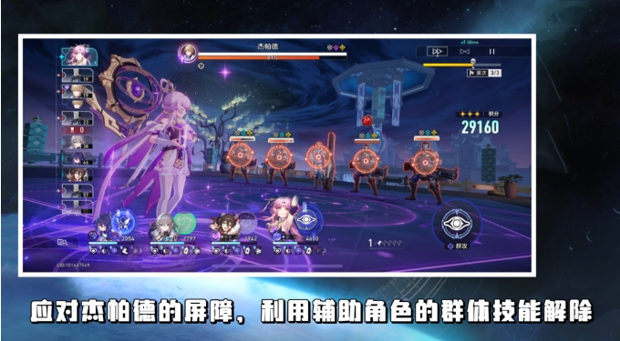 本期虚构叙事的最终boos上半是杰帕德,下半则是史瓦罗;这两个角色的机制想要大家再熟悉不过了,杰帕德方面只需要注意他为队友提供的屏障即可,可以利用副c或者一些生存位的范围攻击类技能来消耗掉敌方身上的这一次屏障,来保证后续主c进行输出时,伤害高的技能不被抵抗;