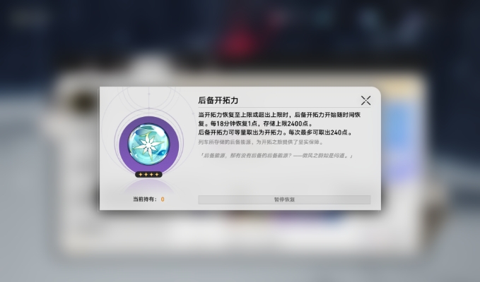 后备开拓力是基于开拓力已经满了的情况下,可以为溢出的开拓力提供更多的储存空间,不过后备开拓力和开拓力的恢复时间是不相同的,因此需要注意一下。