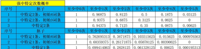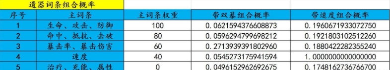 已知副词条为带权不放回抽取,且主词条出现的副词条不会出现,可通过穷举所有组合来得出概率,计算结果可得: