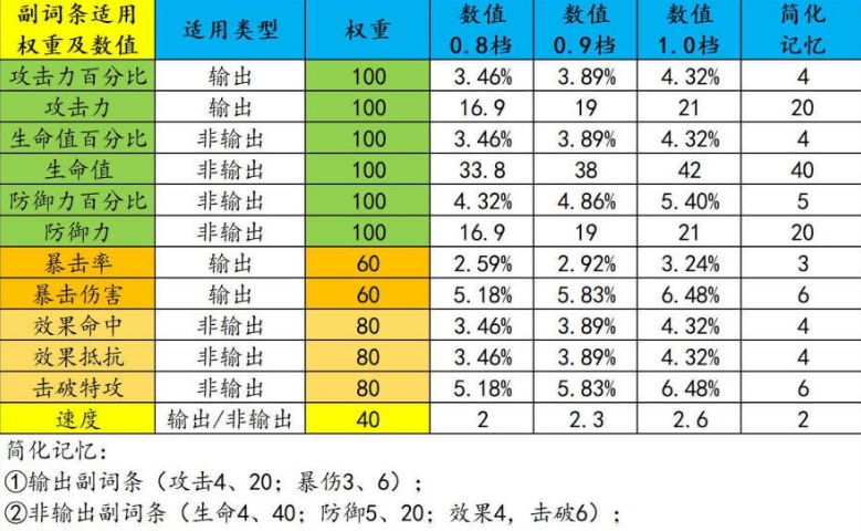 由上图可知,哪怕是主词条最难出暴伤衣,期望上只需要一周的体力,主词条的毕业难度不大。常规输出追求双暴,非输出追求速度。