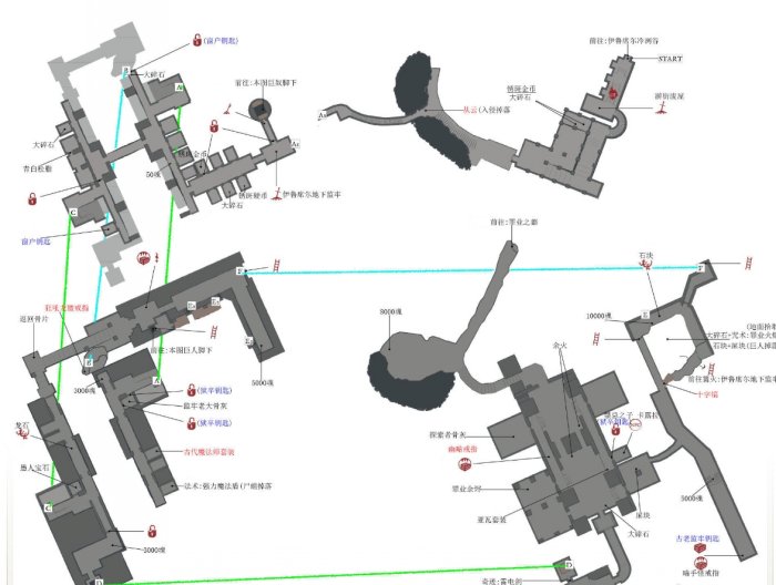 伊鲁席尔地下监牢,从营火“伊鲁席尔地下监牢”出发,到走廊后右转直走一段,下楼梯,楼梯边就是关着监狱老大骨灰的门。