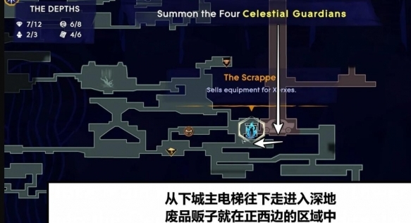 废品贩子位于深地,用薛西币可以购买护符,位置如下图所示: