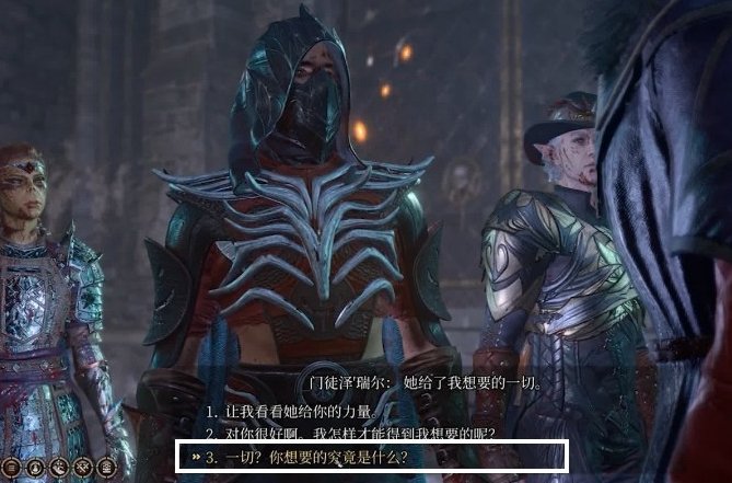 第一个选项123随意,泽瑞尔会直接翻找我们脑子里所藏的信息。第二个选项为属性选项,大家根据自己情况选择。第三个选项选3,可以得知泽瑞尔的目的