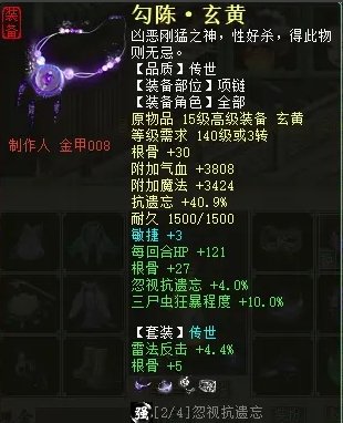 项链毫无悬念,肯定就是选择忽视遗忘4的项链,有条件的尽量选择属性点多的,小编用的是根骨多的,是为了全敏属性跟500根骨属性不需要切属性点就能直接更换装备