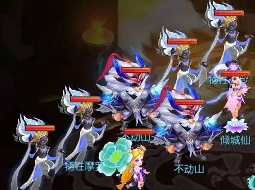 本关卡的难度就在于不动山开了嘲讽以后选择攻开的玩家没法清理倾城仙,所以本关卡比较利好选择了天雷闪流派的多法宠玩家