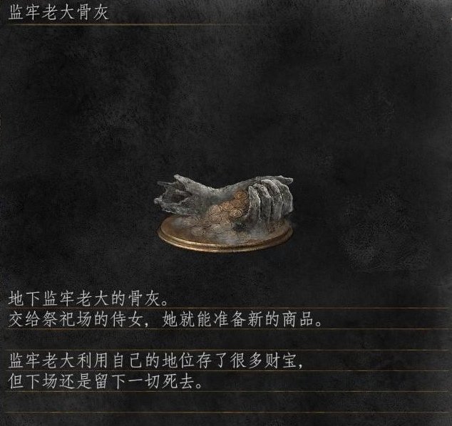 以上就是关于《黑暗之魂3》监狱老大骨灰获取攻略的全部内容,希望能够有所帮助。更多相关攻略点击B游查看。