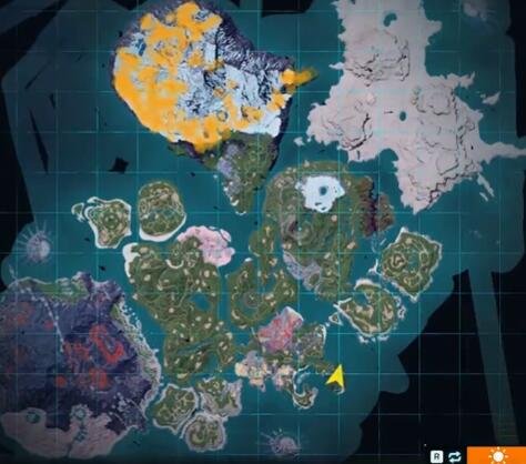 玩家需要前往如图位置的传送点来找到它。位于帕洛斯群岛最左上角的冻土区域沿海边方向,分布区域较广。